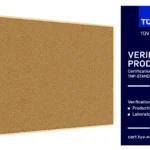 Lo strato di sughero, spesso 1 mm, è applicato su una solida base in fibra di legno (MDF), che assicura stabilità strutturale.