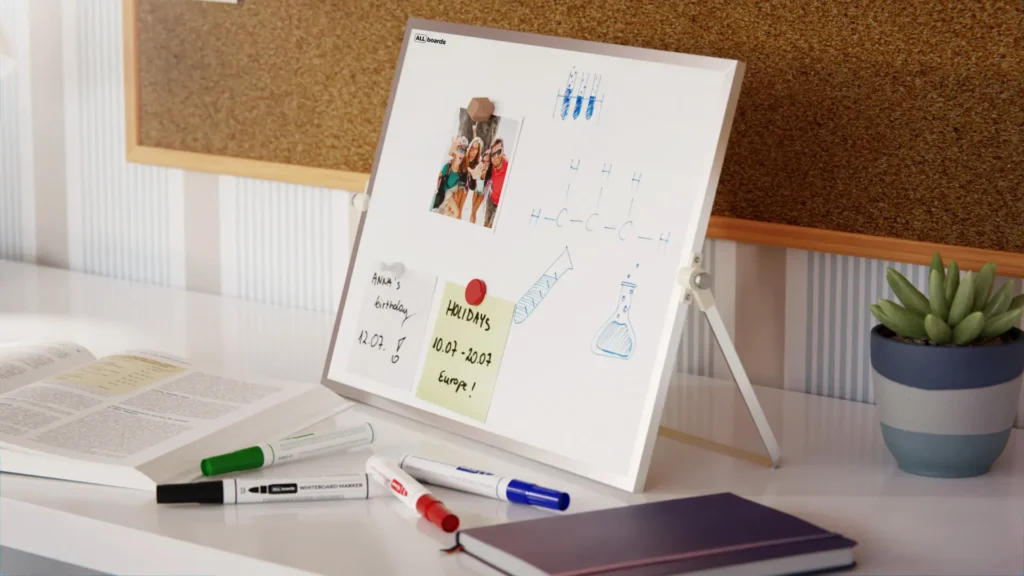 Lavagna magnetica cancellabile 40×30 cm per scrivania con supporto