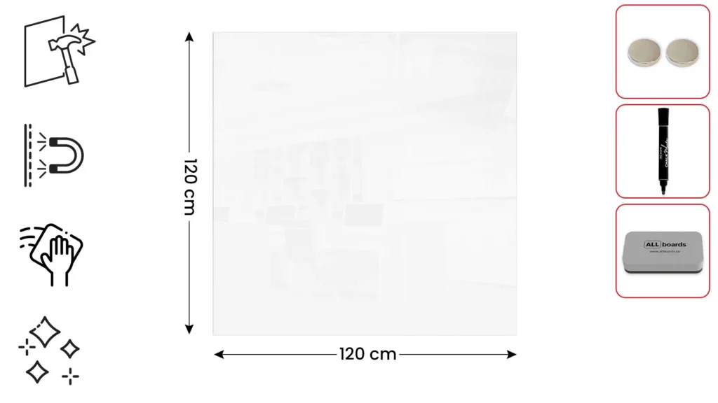 Lavagna in vetro magnetica 120×120 cm Premium SUPERWHITE + GRATIS