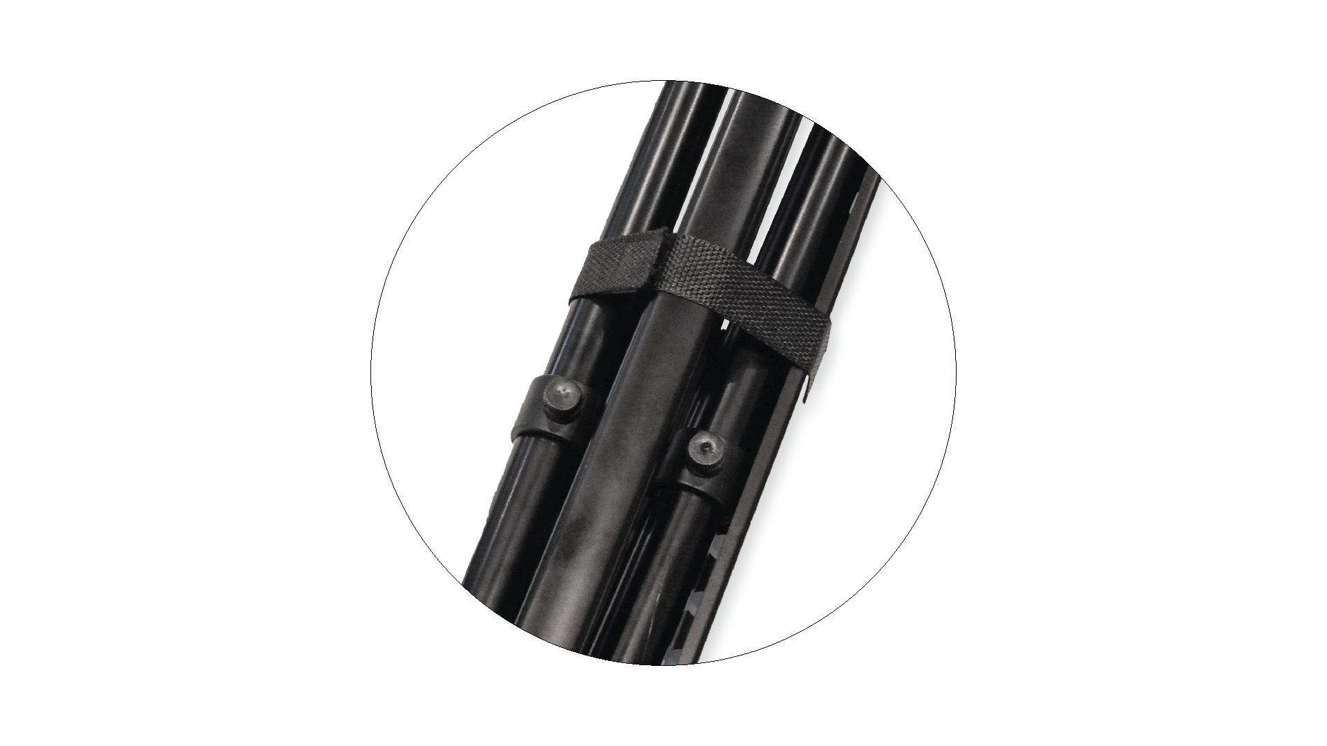 Una volta piegato, il cavalletto può essere riposto ovunque: il tutto è fissato con un robusto velcro.
