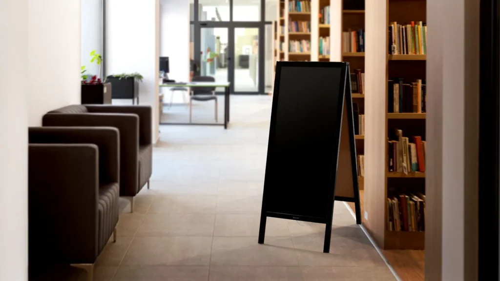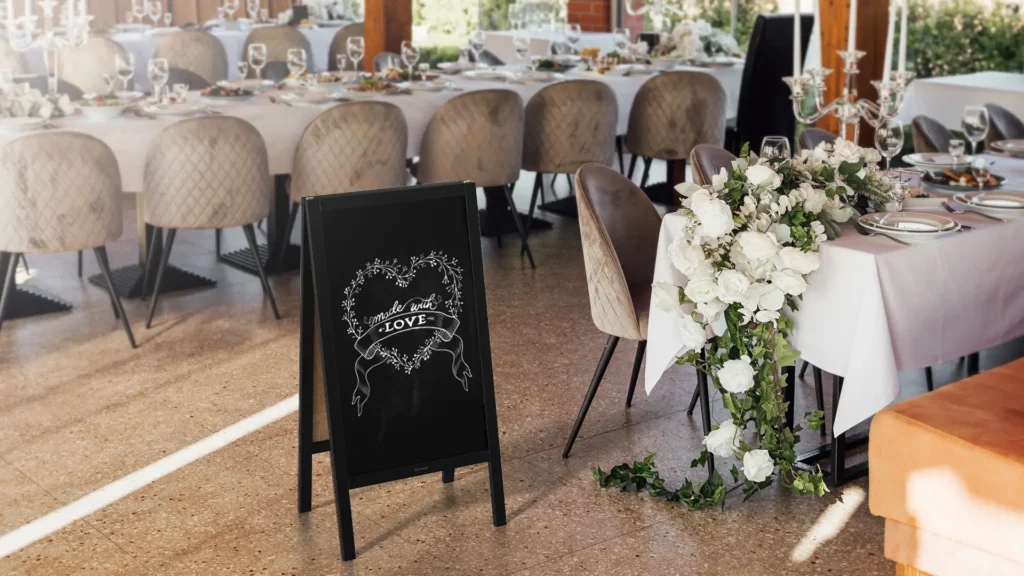 I cavalletti pubblicitari con cornice in legno naturale sono disponibili in diversi formati e le cornici in legno sono disponibili nei colori nero, oro, grigio, rosa, azzurro e bianco.