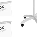 Lavagna a fogli mobili magnetica mobile su ruote con bracci estendibili 100×70 cm