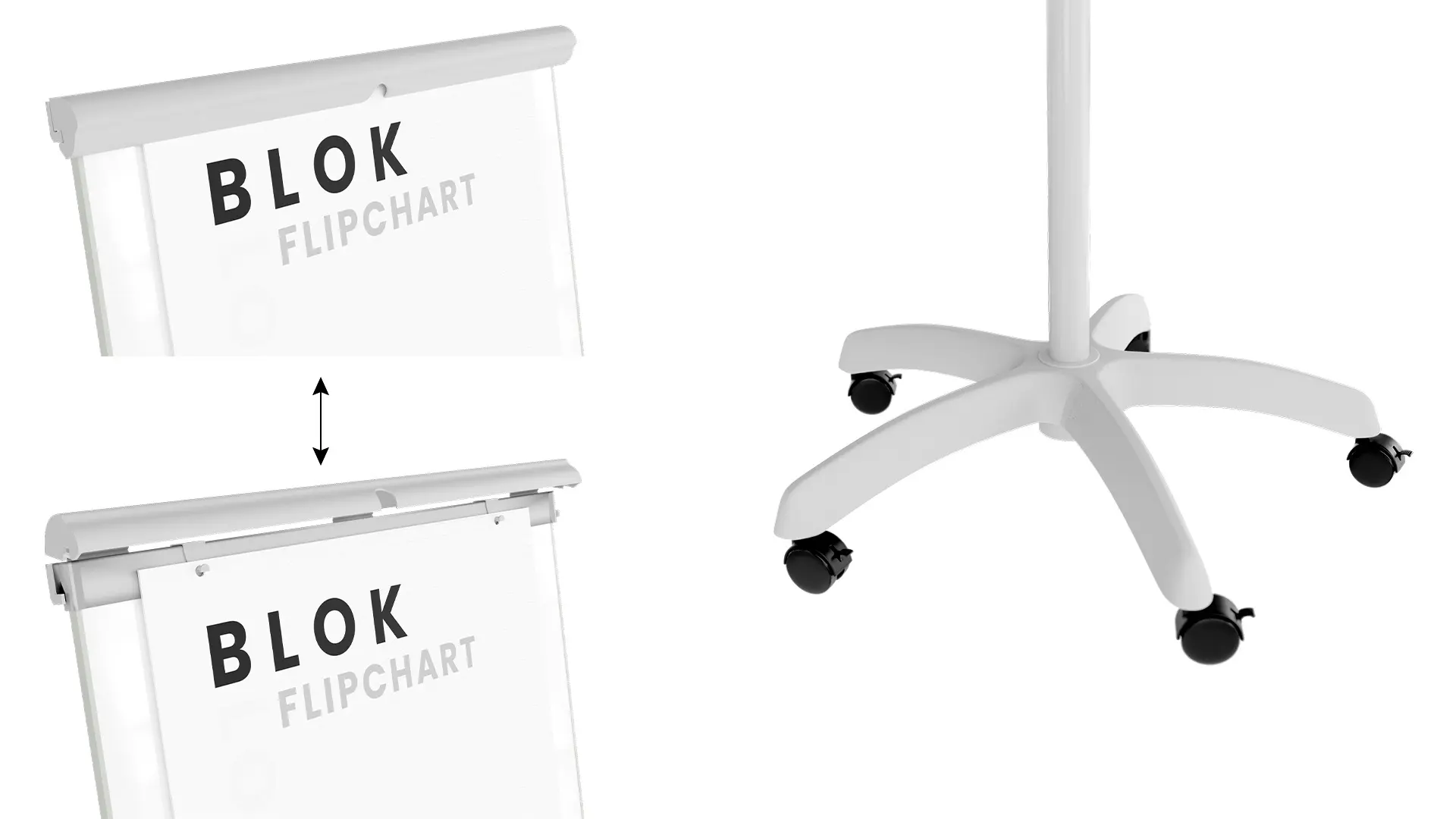 Questa lavagna a fogli mobili è fissata su una base molto solida che assicura stabilitĂ . Le ruote alla base permettono di spostare la lavagna da un ambiente all'altro in modo comodo e sono dotate di un sistema di bloccaggio che conferisce ancora piĂ¹ stabilitĂ durante l'utilizzo.