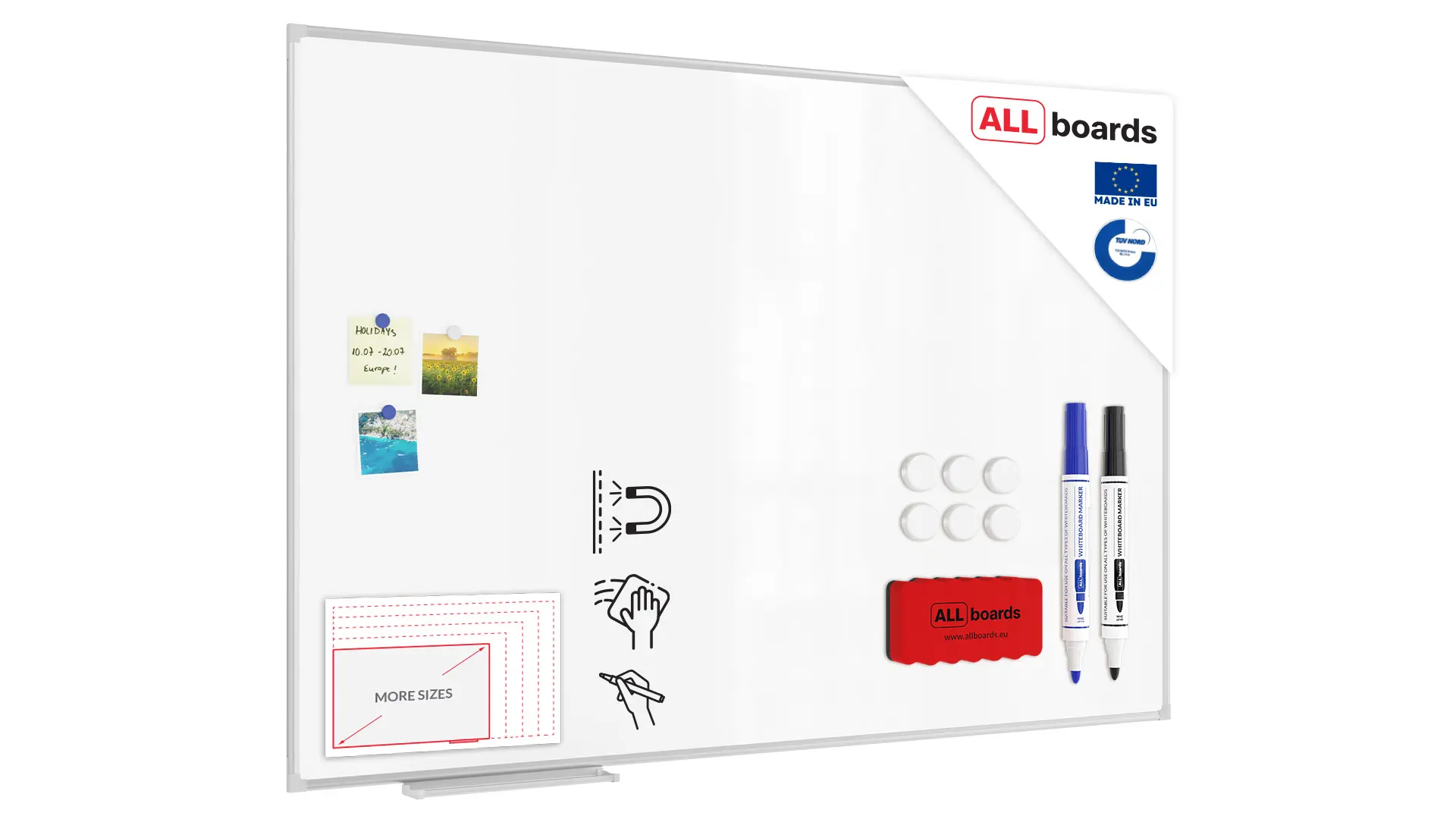 • SUPERFICIE: superficie bianca, magnetica e cancellabile a secco, realizzata con una lamiera di altissima qualitĂ
