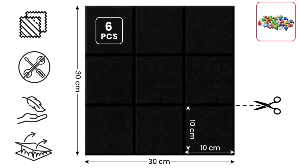 Pannelli in feltro a parete 30x30cm neri – 6 pezzi