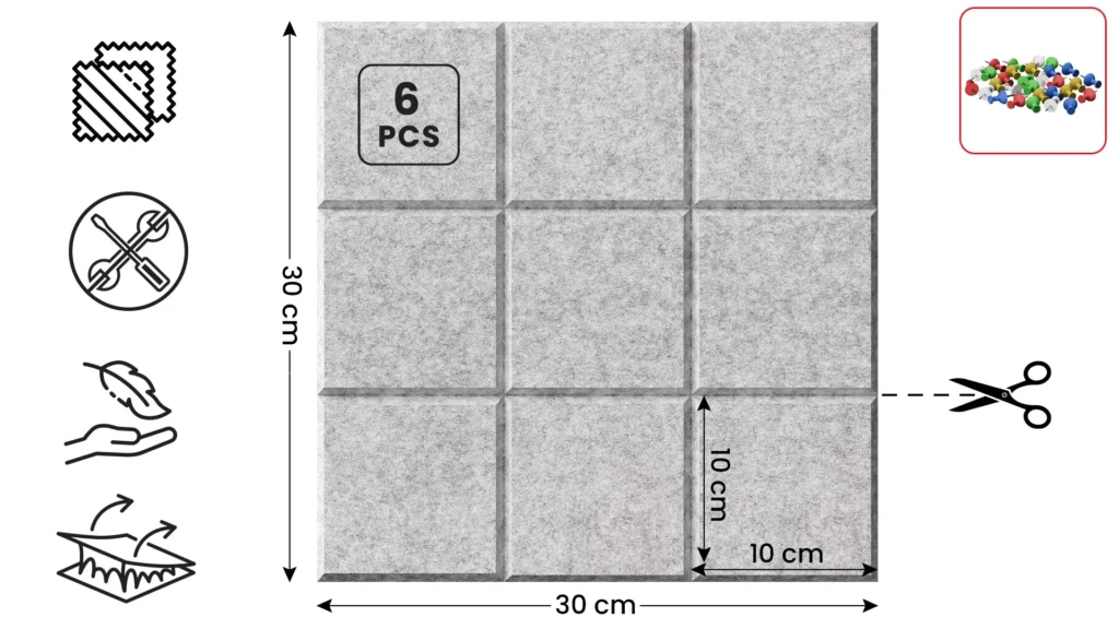 Pannelli in feltro a parete 30x30cm grigi – 6 pezzi